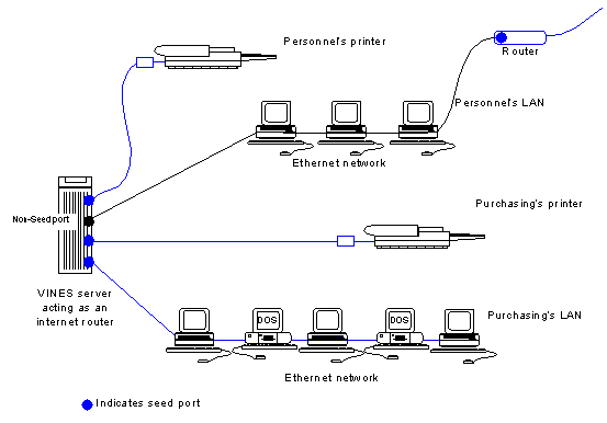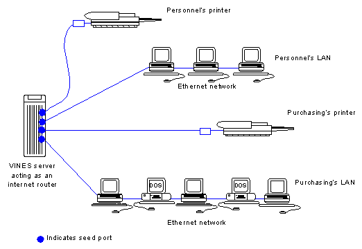 Note: Do not confuse seed ports with seed routers. A seed router is an AppleTalk internet router that informs routers on the same LAN segment of the network information and zone information for the LAN segment. In a VINES network, all VINES servers running AppleTalk are seed routers once their AppleTalk ports have initialized successfully. On the VINES servers, the ports may then be configured as either seed or non-seed.
