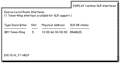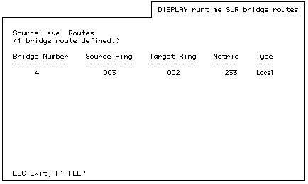 If you choose SLR Bridge Routes at the DISPLAY Runtime Configuration menu, the DISPLAY Runtime SLR Bridge Route screen appears, as shown in Figure 4-22.