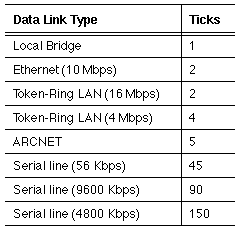 Note: The metric for an Ethernet data link is always two ticks, even if the links are Ethernet bridges or Ethernet-to-T1 bridges.
