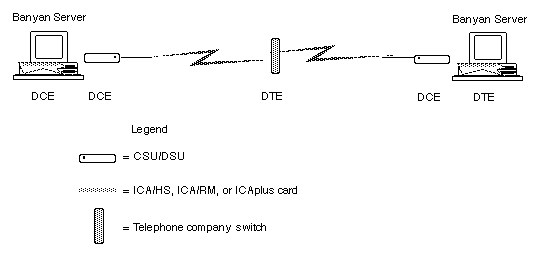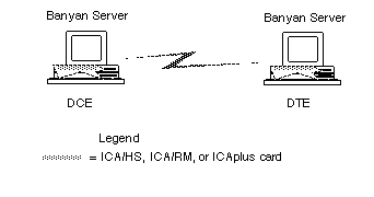 You must specify DCE or DTE when assigning the option at the server console. Coordinate with the administrator of the other server when determining the DCE/DTE roles. The role you assign to your Banyan server should be the opposite of the one assigned to the Banyan server at the other end of the connection. Figure 5-3 illustrates this.