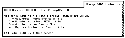 5. Select MANAGE inclusions. The Manage STDA Inclusions menu appears.