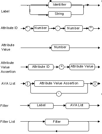 The AVD syntax is defined by a grammar that can be described using Backus-Naur notation. The following simplified rules are all that you normally need to modify a file. If you edit a filter and encounter a syntax error when you compile the file, you can find detailed information about grammar syntax at the end of this chapter.
