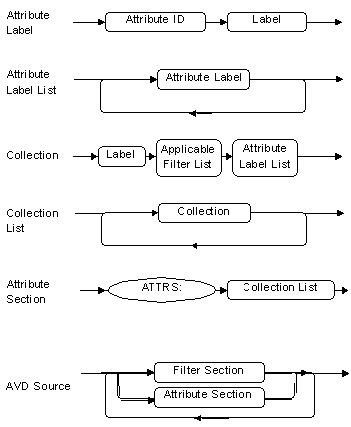 This section describes syntax rules of AVD source files that use the Backus-Naur notation system used to create and modify attribute definition files.