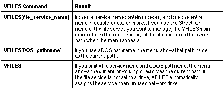 Table 4-7 lists the three different ways in which the VFILES command may be used from the DOS command line.