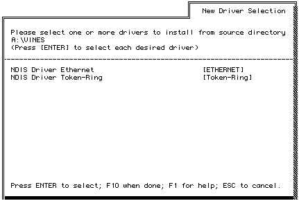 9. Press ENTER to select the LAN drivers you want to install. An asterisk (*) appears next to the LAN driver you select. Press F10 to load this driver onto your workstation.