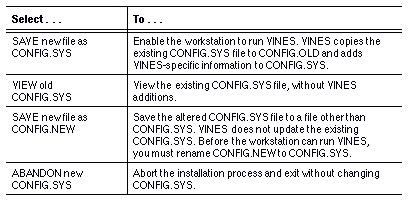 2. Select SAVE new file as CONFIG.SYS. Other options are described in Table 12-1.