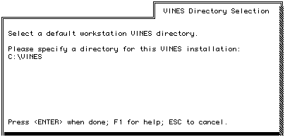 6. Specify the directory to be created for VINES files on each workstation. When you finish, the VINES Installation Diskette Selection screen, Figure 12-7, appears.