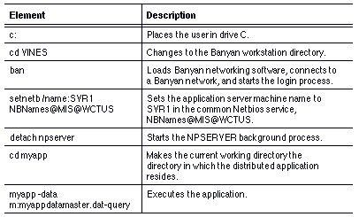 This example uses a common implementation of distributed applications as its model. The program names used in the command files below are only an example. However, the sequence for loading Banyan networking software and application software applies to all distributed Named Pipe applications.