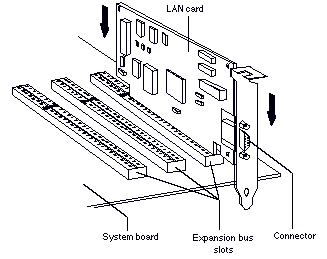 A LAN card connects to a workstation through an expansion bus located on the workstation's system board. (See Figure 2-1.) The bus includes a series of slots that allow you to install adapter cards other than those that came with the unit. Each slot has a series of connectors that allow the workstation to communicate with an add-on card. The vendor's workstation documentation describes the type of expansion bus used in the workstation.