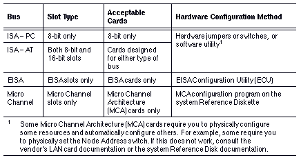 Banyan networking software supports the types of expansion buses listed in Table 2-1.