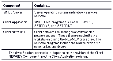 Banyan networking software consists of programs that run on the server and programs that run on the client workstation. These software programs are organized into three elements called components: