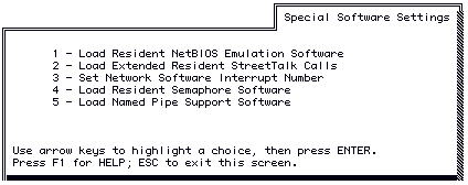 5. Press ESC to exit the Special Software Settings menu and return to the Configuring A PC for Network menu.