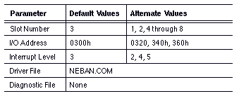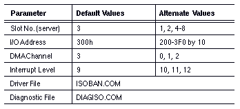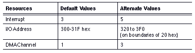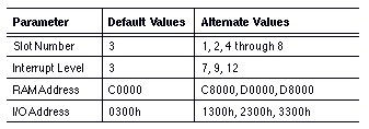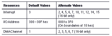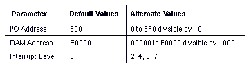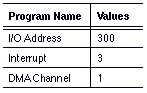 specifies the default Interrupt 3, the default I/O Address 300, and an alternate value of 3 for the DMA Channel.