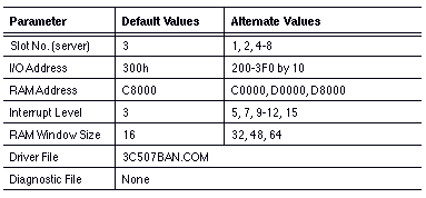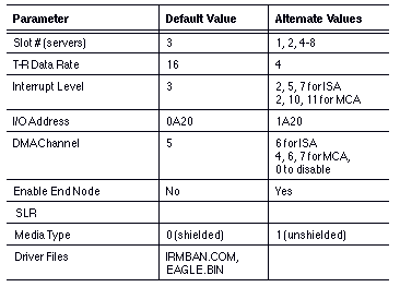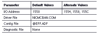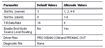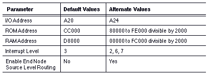 4. For the 3COMREUI program to run properly, it must use the correct configuration values for the TokenLink card. Unless you specify otherwise, the program assumes the default values in Table A-9.