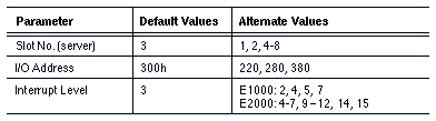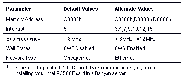 This section provides information on configuring the Intel PC586E card in a client or a server. Table A-28 shows the values for this card.
