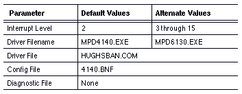 The Hughes Sytek 4140 and 6130 cards are supported only in ISA clients. The 4140.BNF file is a default configuration file used by both cards. Table A-20 shows the values for the Hughes cards.