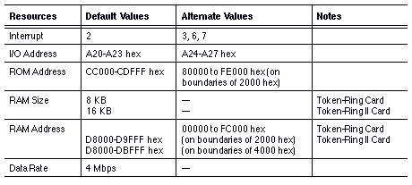 The same IRMAtrac Token-Ring Adapter/Convertible card can be used for either an ISA or Micro Channel system. Table A-18 lists the values for this card.´
