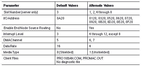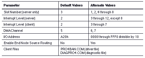 ProNET-10 PC/AT cards are supported on the client and server. Supported values are listed in Table A-43.
