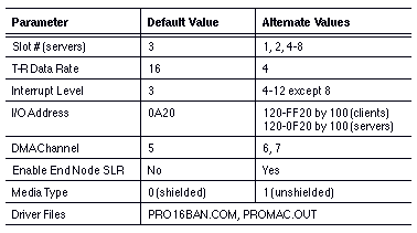 The Proteon ProNET-4/16 p1890 and p1892 Token-Ring cards are supported on MCA clients and MCA servers. Table A-41 shows the values for these cards.