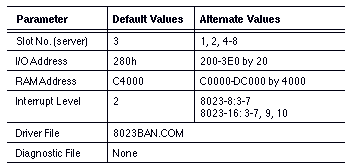 Note: Banyan also supports the Cabletron E3000 card for MCA servers. When you install this card in your server, the only configuration value that you must supply is the slot number.