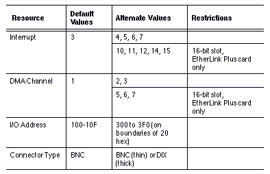 This appendix provides lists of supported resource settings for various LAN cards. The lists are organized alphabetically by LAN card type. Special configuration instructions are included for some cards.