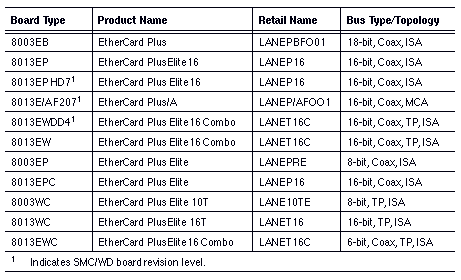 The Standard Micro Systems (SMC)/Western Digital® (WD) Elite Ethernet LAN cards listed in Table A-49 are supported on ISA and MCA servers and DOS clients.