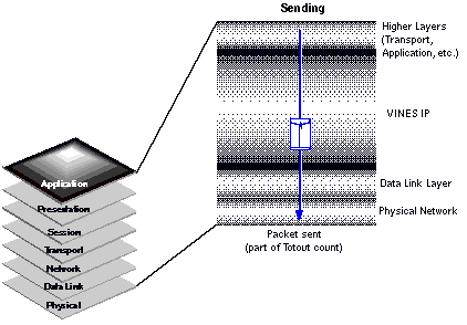 When application programs, such as clients and services, send data in a VINES network, they deliver the data to the underlying layers. As the data moves downward through each layer, it is encapsulated in that layer's protocol header for delivery to the appropriate destination. By the time the application data is transmitted on the LAN or WAN, it is encapsulated in several headers.