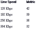 Notice that the Ethernet-to-T1 link has a metric of 2. The Ethernet-to-T1 bridge makes the link appear as an Ethernet LAN to JPTOK001 and USCHI001. As a result of this appearance, the two servers assign a metric of 2 to the link instead of a full T1 or fractional T1 metric.