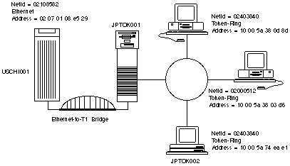 For example, in Figure 13-1 the LAN address of server JPTOK001 on the Token-Ring LAN is: