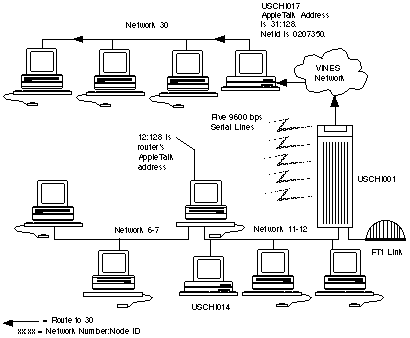 An AppleTalk route through a VINES network
