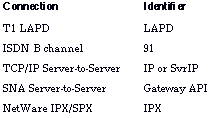 Connections other than LANs, HDLC or asynchronous lines, or X.25 VCs are identified as follows: