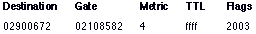 If the destination is the default gateway, the gateway's IP address appears in the Gate field.